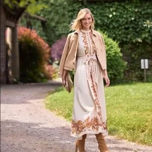 This style was specially made for Jude Connally in India. This garment has been hand printed/hand woven from artisans in India. Color variations and unevenness in print and fabric color is an inherent characteristic of the fabric and not to be taken as fault