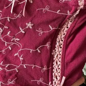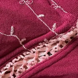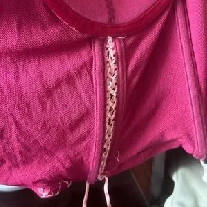 Stylish pink corset top with delicate floral embroidery. Features adjustable straps and lace-up details. Pre loved condition with minor signs of wear such as piling, loose threads, exposed boning and fraying in the ribbon. None of it is major but it is all pictured. If you have any questions please let me know! I am open to offers. 🥰