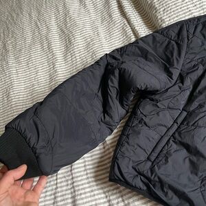 Stay warm and stylish with this black quilted jacket. Perfect for any occasion. Size small never worn and no tags! I removed them, sorry!