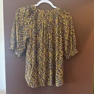 Anthropologie Maeve Floral Button-Front Puff Sleeve Blouse