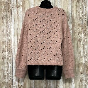 Stay cozy and stylish with this pink knit sweater. Perfect for any casual outing. In excellent condition
