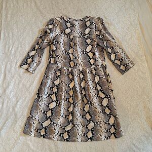 This dress is the perfect combination of comfort and style! Snakeskin python print with 3/4 length sleeves and v-neckline! Slightly flowy fit that makes it breezy and comfy for multiple seasons! In excellent used condition!