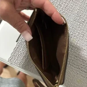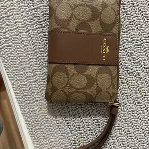 This Coach wallet showcases the brand's iconic monogram pattern in a sophisticated brown hue. Crafted with premium materials, it offers a timeless design that complements any ensemble. The wallet's structured shape and clean lines reflect Coach's commitment to quality and style.