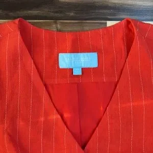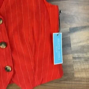 Vibrant red-orange vest with subtle stripes and button-up front. Perfect for adding a pop of color to any outfit.
