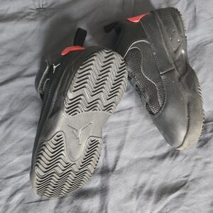 Stylish and comfortable, these black Jordan sneakers are perfect for active kids. Featuring a sleek design and durable construction, they offer great support for everyday adventures.