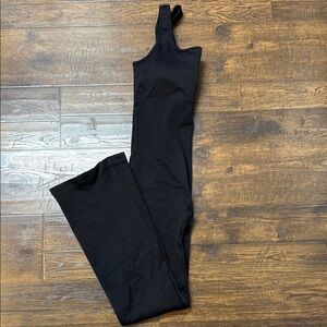 OQQ Black Ribbed jumpsuit flare legs