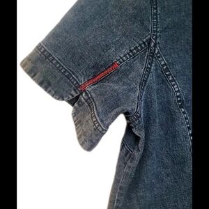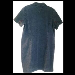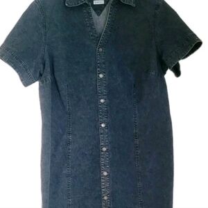 Cute & comfortable women's vintage Tommy Hilfiger dark blue jean denim snap front shirt dress.
