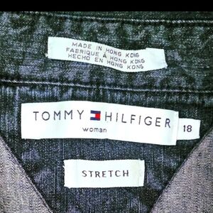 Vintage Tommy Hilfiger Blue Jean Denim Snap Front Womens Shirt Dress Size 18 1X