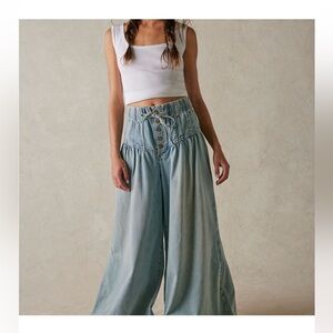 We The Free People Forget Me Knot Pull-On Pleated Wide Leg Jeans - size medium