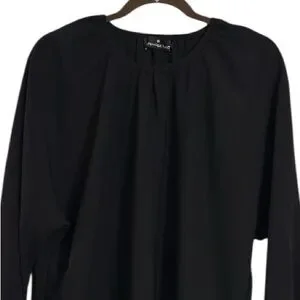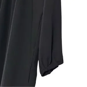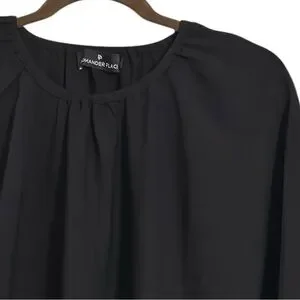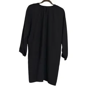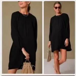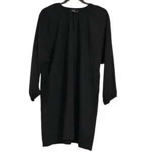 Look elegant and stylish in this beautiful Tuckernuck Pomander Place Black Eliza Dress. The dress features a solid pattern, long sleeves, and a round neckline. It has a pullover neckline and is made of woven polyester fabric, making it comfortable for any occasion. Dress has no seam stitching on the arms with elastic cuff sleeves for a great loose fit.