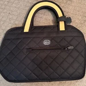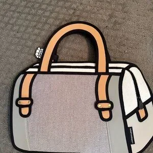 Stylish cream and gray handbag with tan accents. Features a unique design and sturdy handles. Worn once, with tag.