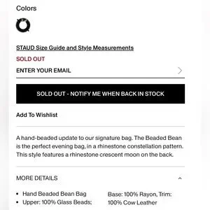 Brand new in original packaging from STAUD and I would like to keep it in the wrapping so it stays in pristine condition.