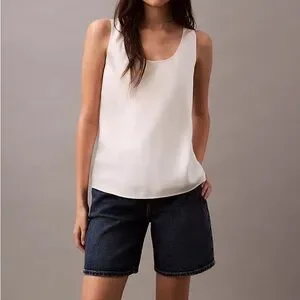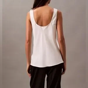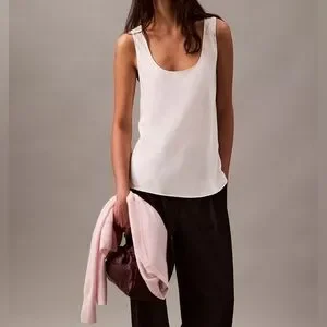 Airy and lightweight, this relaxed tank top has a bias cut for a soft, gentle drape. Cut in a relaxed silhouette with a soft effortless look. Styled with a scoopneck and a low U-back. Perfect for a chic and minimalist look.