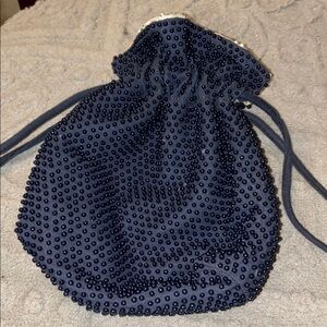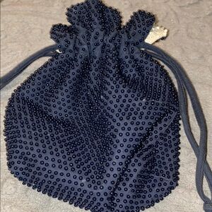 Elegant Navy Beaded Drawstring Bag