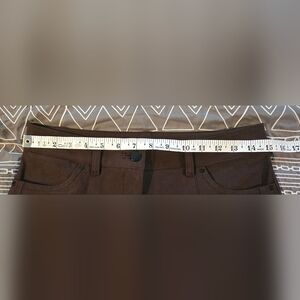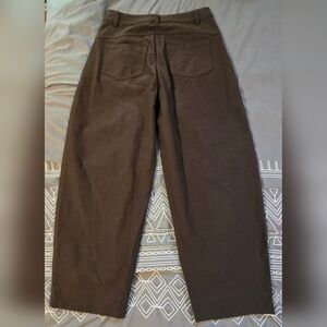 Great condition. Size 28. Espresso color. Midrise. Barrel inspired pants. 5 pockets. Pleated front. Designed for casual. Relaxed fit. Full length intended to sit just off the ground. Measurements and fabric content listed above in pictures.