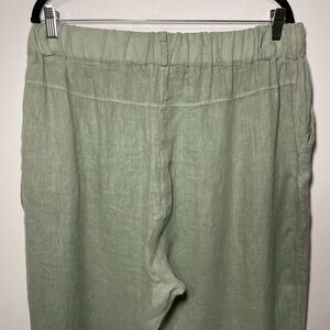 Lungo L Arno Womens Sage Green 100% linen wide leg pull on pants in 1X