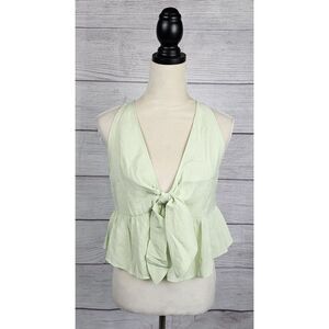 Zara Peplum Cropped Deep V-Neck Halter Top Mint Green Size Small