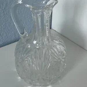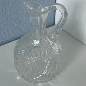 Elevate your dining table with this exquisite white serveware piece, featuring intricate cut glass detailing. This Cruet’s elegant design and craftsmanship add beauty to your table.