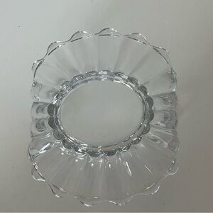 This clear glass accent piece features a scalloped edge design, adding a touch of elegance to any decor. Its vintage-inspired style and intricate detailing make it a standout addition to your home. Perfect for creating beautiful light reflections and enhancing your space with sophistication.