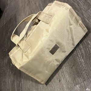 Item is a JM New York roll up bag. Perfect for small items to be stored away at your convenience. Perfect for travel or using as a makeup bag to store all items.