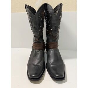 The #War Eagle showcases a soaring studded eagle front and back. The #War Eagle is made for the stage, just the right amount of show and attitude. O-ring harness straps has metal studs. Fashion square toe and western influenced design.