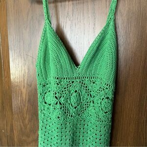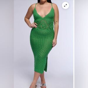 GREEN WITH ENVY CROCHET MIDI DRESS IN GREEN