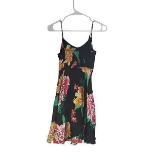 Old Navy Womens XS Black Floral Fit & Flare Cami Dress Tropical Beach Hawaii