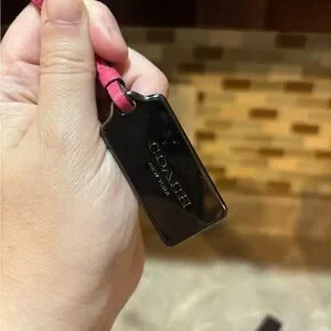 Stylish Coach bag tag. Vibrant pink color. Perfect accessory.