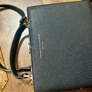 Stylish black crossbody bag by Brandon Blackwood. Features a sleek design with a textured finish.