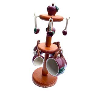 • Durable wooden stand with apple design hooks