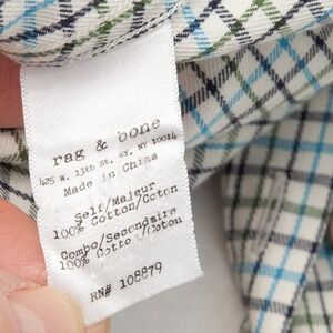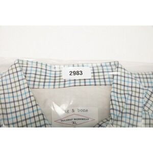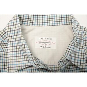 Rag & Bone Shirt Mens Extra Large Black Blue Green Tattersall Plaid Long Sleeves