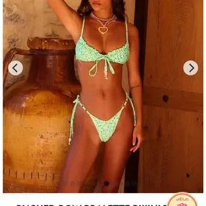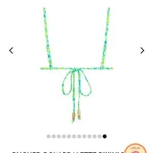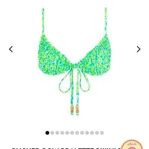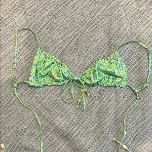 Kulani kinis medium bikini top, never worn (too small for me). Bright green bikini top with floral pattern. Features a ruched design and adjustable straps.