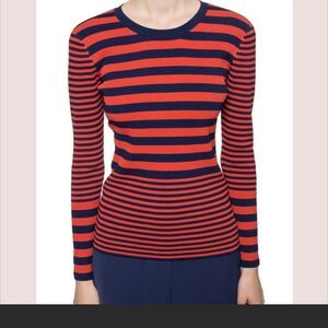 Michael Michael Kors Orange/Blue Stripped stretch Ribbed Knit Sweater