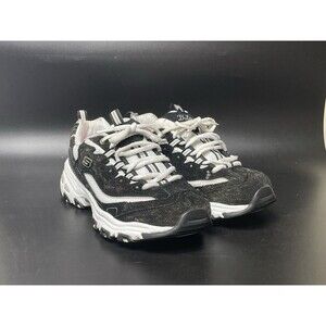 These black and white sneakers feature glitter accents and the Skechers logo, adding a touch of fun and style to your outfit. The low-top shoe shaft style and standard shoe width make them suitable for various foot sizes, while the lightweight design allows for easy movement. Whether you're into outdoor activities, athletic sports, or streetwear, these Skechers D'Lites are a must-have in your shoe collection.
