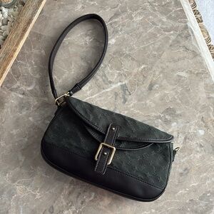 Louis Vuitton monogram mini marjorie flap bag. Dark green color with dark brown leather trim. Can be worn as shoulder bag or wristlet. Two interior pockets, clean inside. Great condition, no stains, cracks or tears. Authentic, see pictures. Dustbag not included.