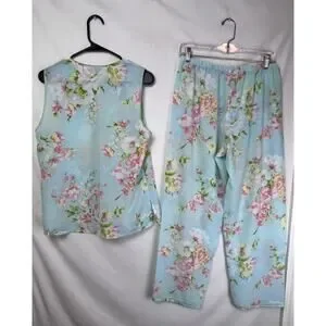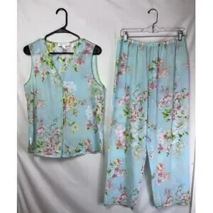 Oscar De La Renta Pink Label Women's Size Med Blue Floral Print Lounge Set