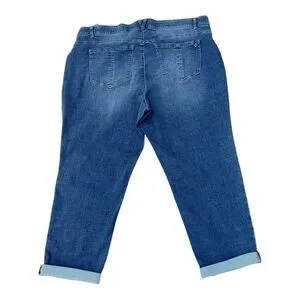 Upgrade your denim collection with these stylish and comfortable Democracy “Ab”solution Girlfriend jeans in size 22W. Designed with a flattering fit, these jeans feature the signature “Ab”solution technology that includes a hidden inner elastic waistband for tummy control and a perfect stretch for all-day comfort.