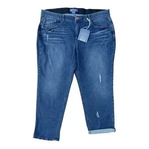 NWT Democracy “Ab”solution Girlfriend Jeans Blue Distressed Stretch Denim
