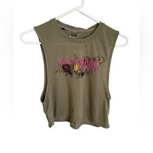 Gymshark Floral Cropped Green Sleeveless Tank Top Shirt Size Small
