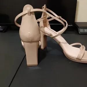 Elevate your style with these elegant Chinese Laundry Nude strappy heels. Perfect for any occasion, these shoes offer both comfort and sophistication. 3" heel. like new condition