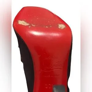 Christian Louboutin Black Satin 100 Nooka Heels Size 37 1/2 US Size 7.5