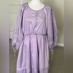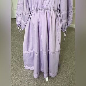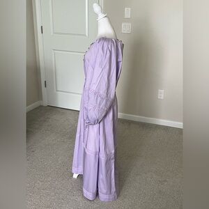NWT Harshman Belle lavender maxi dress with long sleeves Size 2X and 3X. Features delicate embroidery and a cinched waist. This a luxury designer in LA. Dresses run $300-$500.
