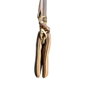 This Tory Burch crossbody bag in a classic tan color is the perfect blend of style and practicality. Its compact design and adjustable strap make it ideal for carrying essentials while on the go. The bag's timeless appeal ensures it complements a variety of outfits effortlessly.