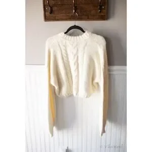Features: Scoop neckline, button-front closure, dropped shoulders, fuzzy fabrication