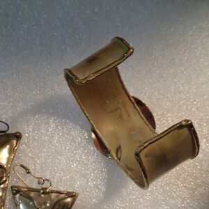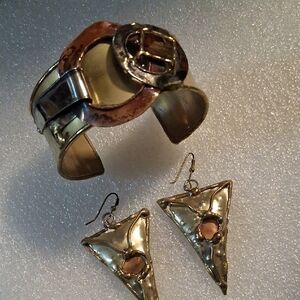Artisan Brass, Copper & Silver. Geometric Cuff Bracelet With Matching Earrings .