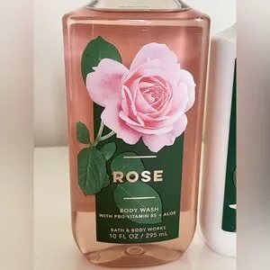 Bath & Body Works Rose Body Wash & Lotion Full Size Set with Plastic Tote Bag. May have minor marks on tote bag. New in bottles. Indulge in the luxurious Bath & Body Works Rose Body Wash and Lotion Set. A refreshing and nourishing experience for your skin. See all photos.
