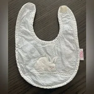 Adorable baby bib featuring a cute bunny design. Perfect for keeping your little one clean and stylish.