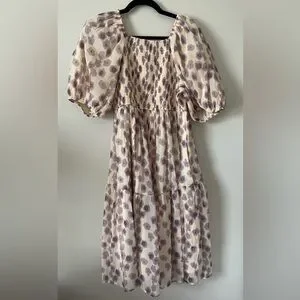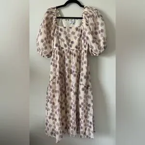 NWOT Polagram Floral Dress in Cream and Purple