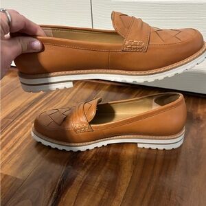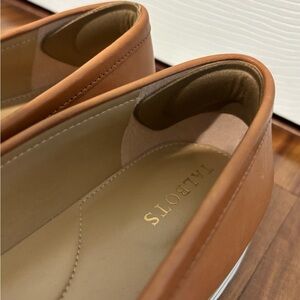 Step out in style with these elegant slip on tan loafers from Talbots. Perfect for any occasion, these shoes offer both comfort and sophistication. Gently used and in good condition! Size 8.5 Women’s. Heels have added cushion pads. Smoke free home.