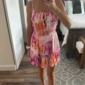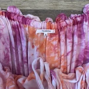 Tularosa Pink Tie Dye Ruffle Mini Dress